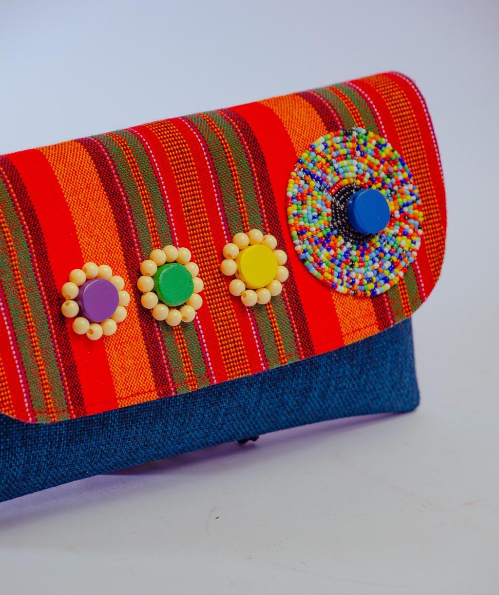 Handmade in Kenya. Size 11" x 6" inches Interior has a small zipper pocket Nylon lining inside Magnetic and zipper closure.